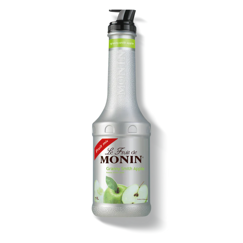 فاكهة مونين تفاح غرانّي سميث عبارة عن مزيج عصيري من التفاح الأخضر الناضج تمامًا الذي يعد بنكهات طازجة طوال العام في مشروباتك الكحولية، والليمونادات، والشاي المثلج، والإبداعات الطهوية.